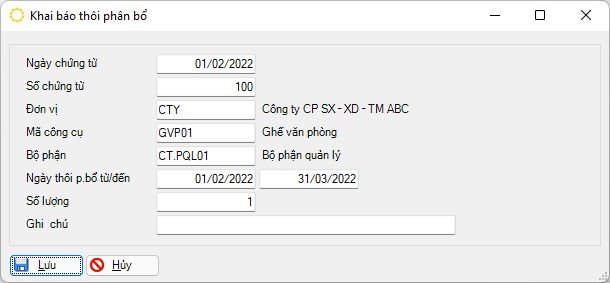 Chương trình vẫn tính chi phí phân bổ cho tháng có ngày thôi phân bổ. Để không phân bổ trong tháng, sẽ khai báo vào ngày cuối tháng trước.