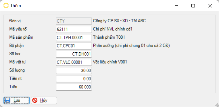 Đường dẫn: Giá thành → Điều chỉnh dở dang đầu kỳ → Điều chỉnh vật tư dở dang đầu kỳ