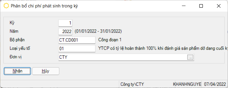 Menu này dùng để phân bổ chi phí phát sinh trong kỳ