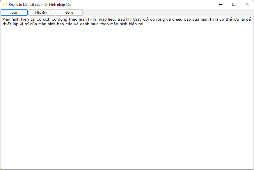 Đường dẫn: Hệ thống → Tiện ích → Khai báo kích cỡ của màn hình nhập liệu