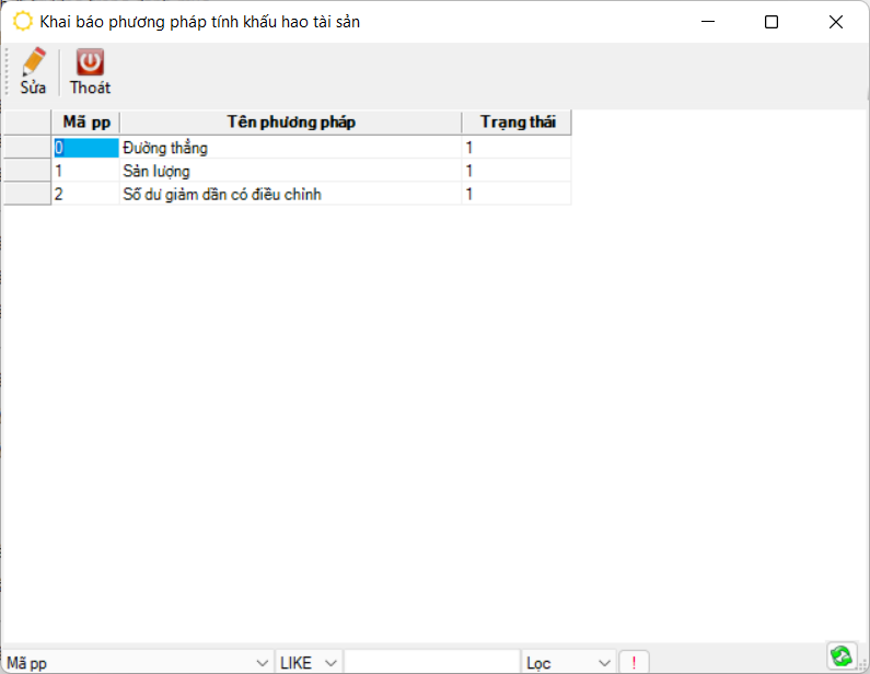 Đường dẫn: Hệ thống → Tiện ích → Khai báo phương pháp tính khấu hao TSCĐ