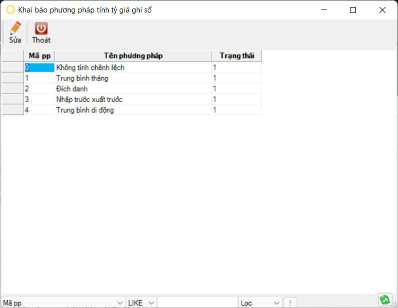Đường dẫn: Hệ thống → Tiện ích → Khai báo phương pháp tính tỷ giá ghi sổ