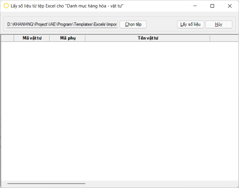 Tiện ích này hỗ trợ doanh nghiệp đưa dữ liệu sẵn có từ tệp Excel vào chương trình, giảm thiểu thời gian nhập liệu lần đầu khi sử dụng chương trình. Những số liệu được hỗ trợ là: