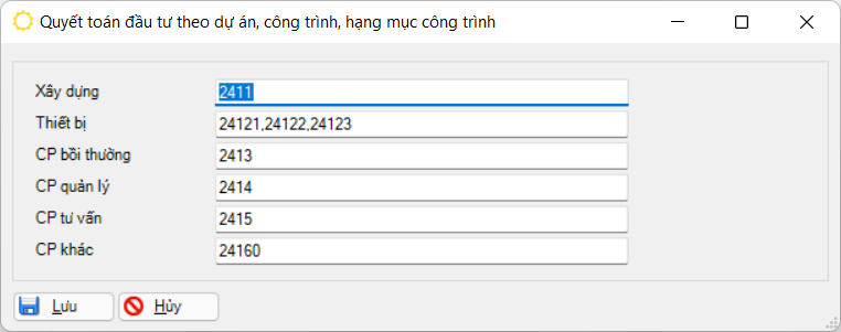 Quyết toán đầu tư theo dự án, công trình, hạng mục công trình