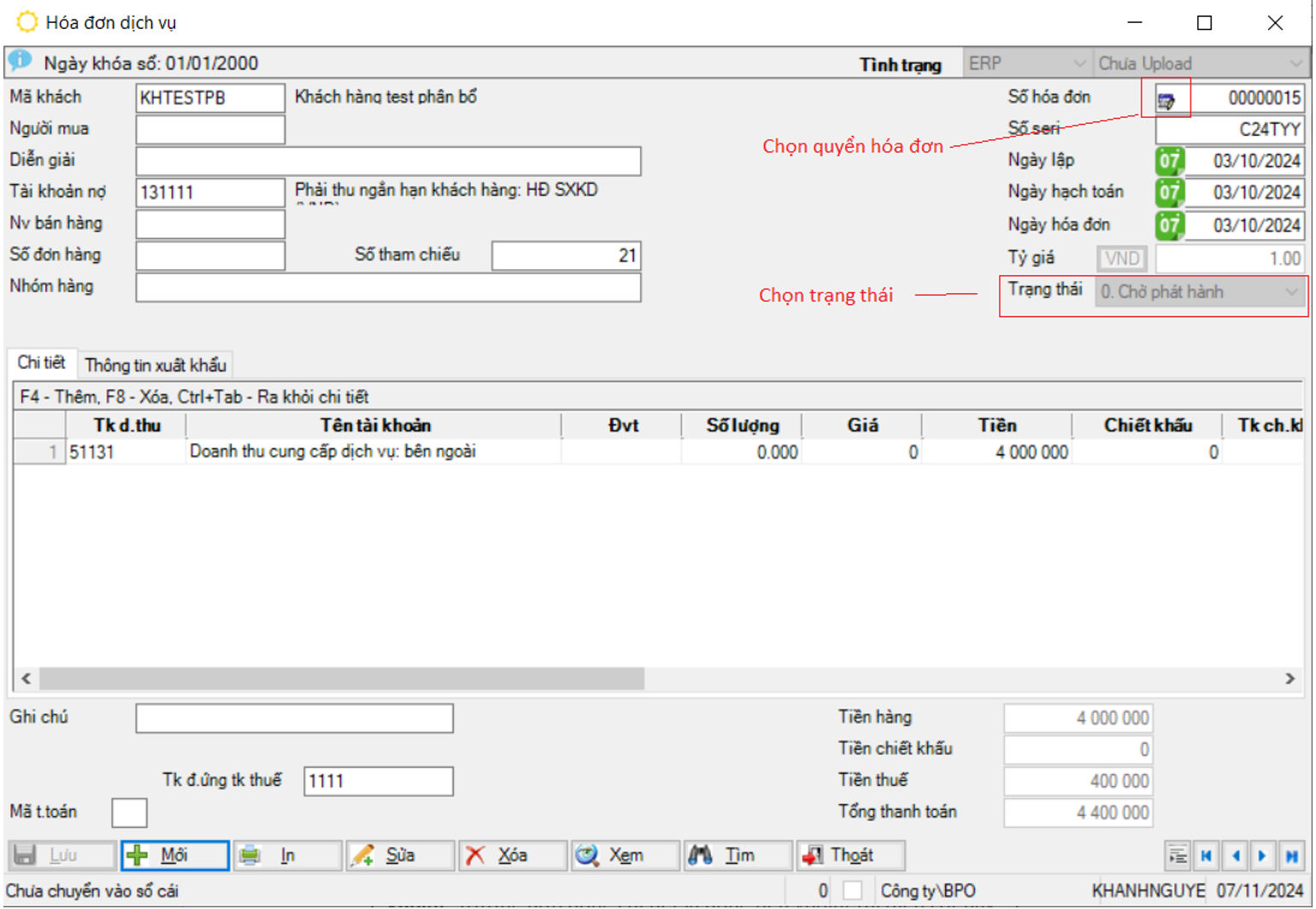 Lập hóa đơn đầu ra trên phần mềm BPO ERP