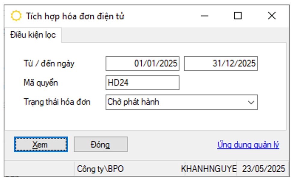 - Nhấn “Xem” để liệt kê danh sách các hóa đơn đang chờ phát hành
