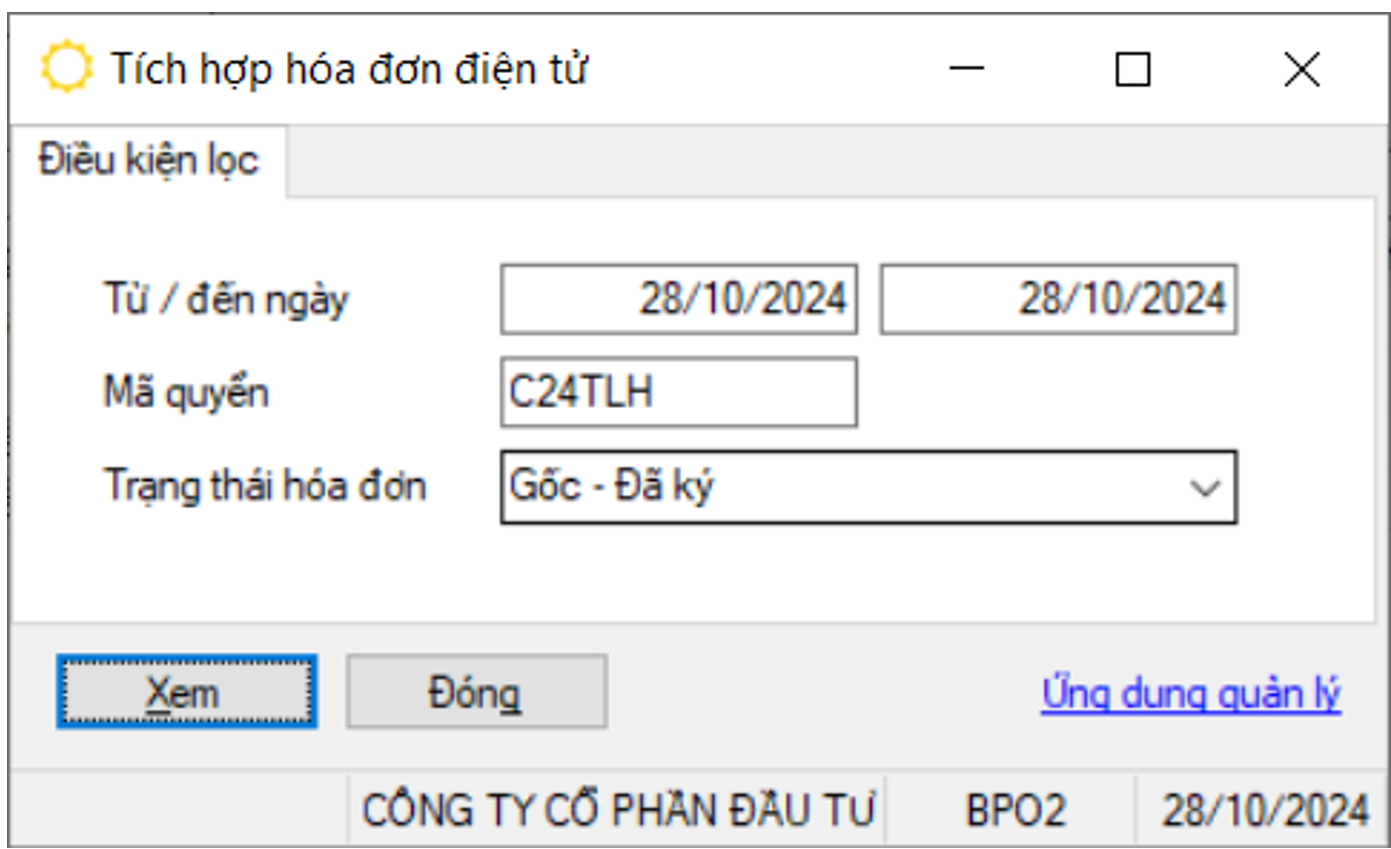 Vui lòng liên hệ với bộ phận kỹ thuật của BPO để cung cấp các thông tin cần thiết liên quan đến phần mềm hóa đơn điện tử đang sử dụng.