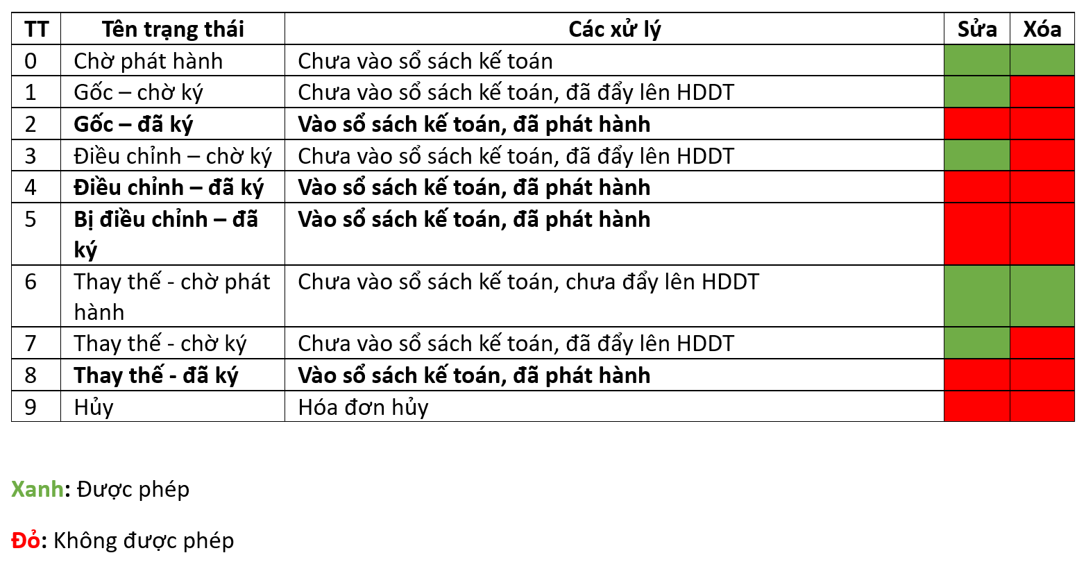 Các trạng thái của hóa đơn và quyền cập nhật dữ liệu trên phần mềm BPO ERP