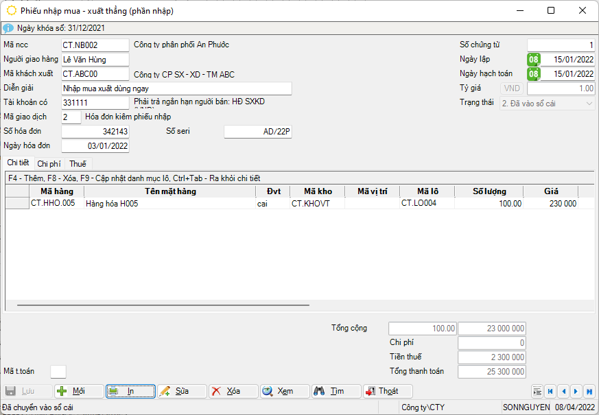 Chi tiết các thao tác làm việc với chứng từ đề nghị xem thêm “Những hướng dẫn chung về cập nhật các chứng từ”