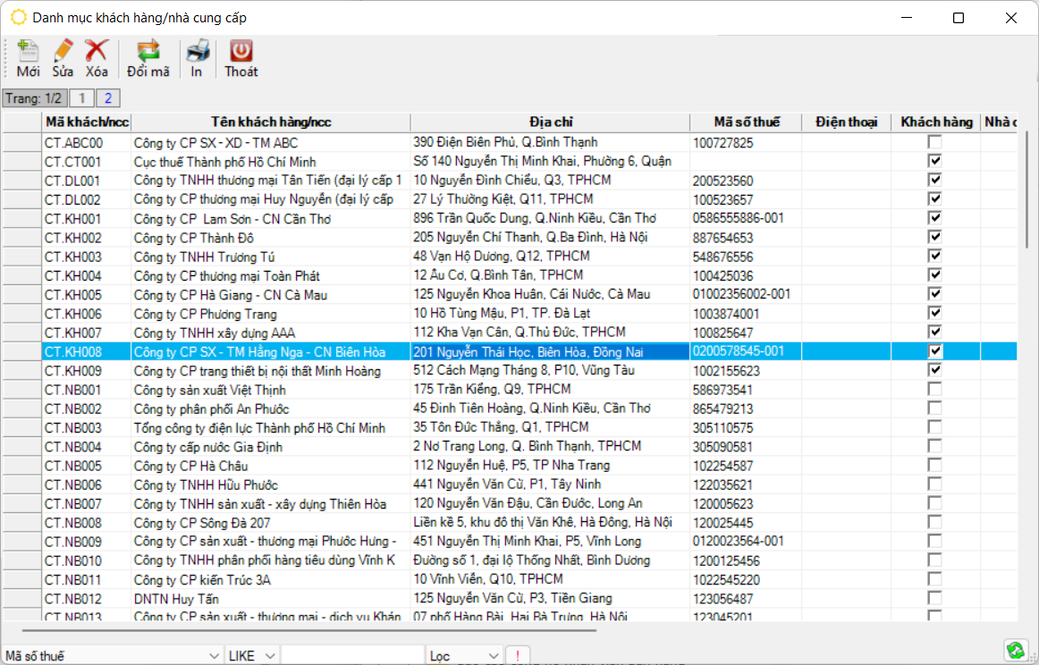 Màn hình “Danh mục khách hàng/ nhà cung cấp”