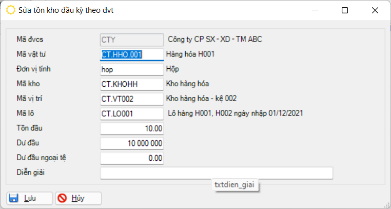 Giá trị tồn kho đầu kỳ theo đvt tính phụ thuộc vào đồng tiền hạch toán và mã ngoại tệ.