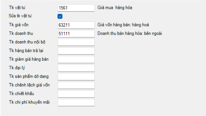 Trong đa số trường hợp, hạch toán của tài khoản tồn kho vật tư không thay đổi. Tuy nhiên trong một số ít trường hợp, nội dung hạch toán có thể thay đổi, phải chọn tùy chọn này để có thể thay đổi tài khoản.