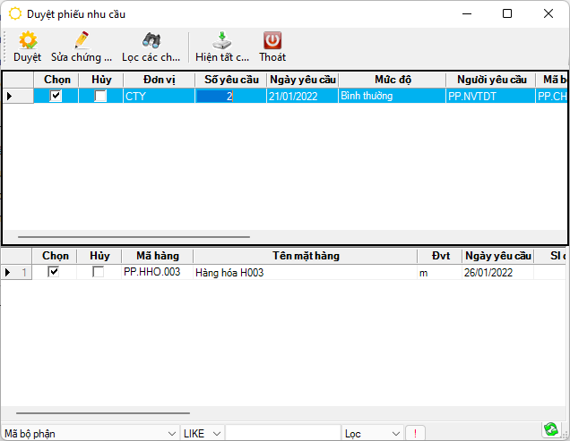 Duyệt phiếu nhu cầu