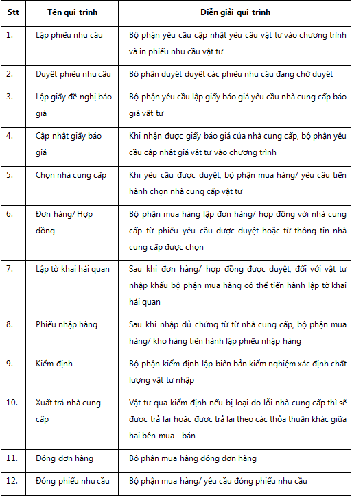 - Các giao dịch trong quy trình Quản lý mua hàng