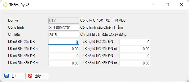 Ngoài việc cập nhật số dư đầu kỳ cho các vụ việc, phải nhập số lũy kế từ khi bắt đầu. Người sử dụng chỉ phải cập nhật số lũy kế từ khi bắt đầu 1 lần duy nhất khi bắt đầu sử dụng chương trình.