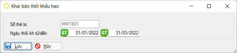 Chương trình vẫn tính khấu hao cho tháng có ngày thôi khấu hao. Để không khấu hao trong tháng, sẽ khai báo vào ngày cuối tháng trước.
